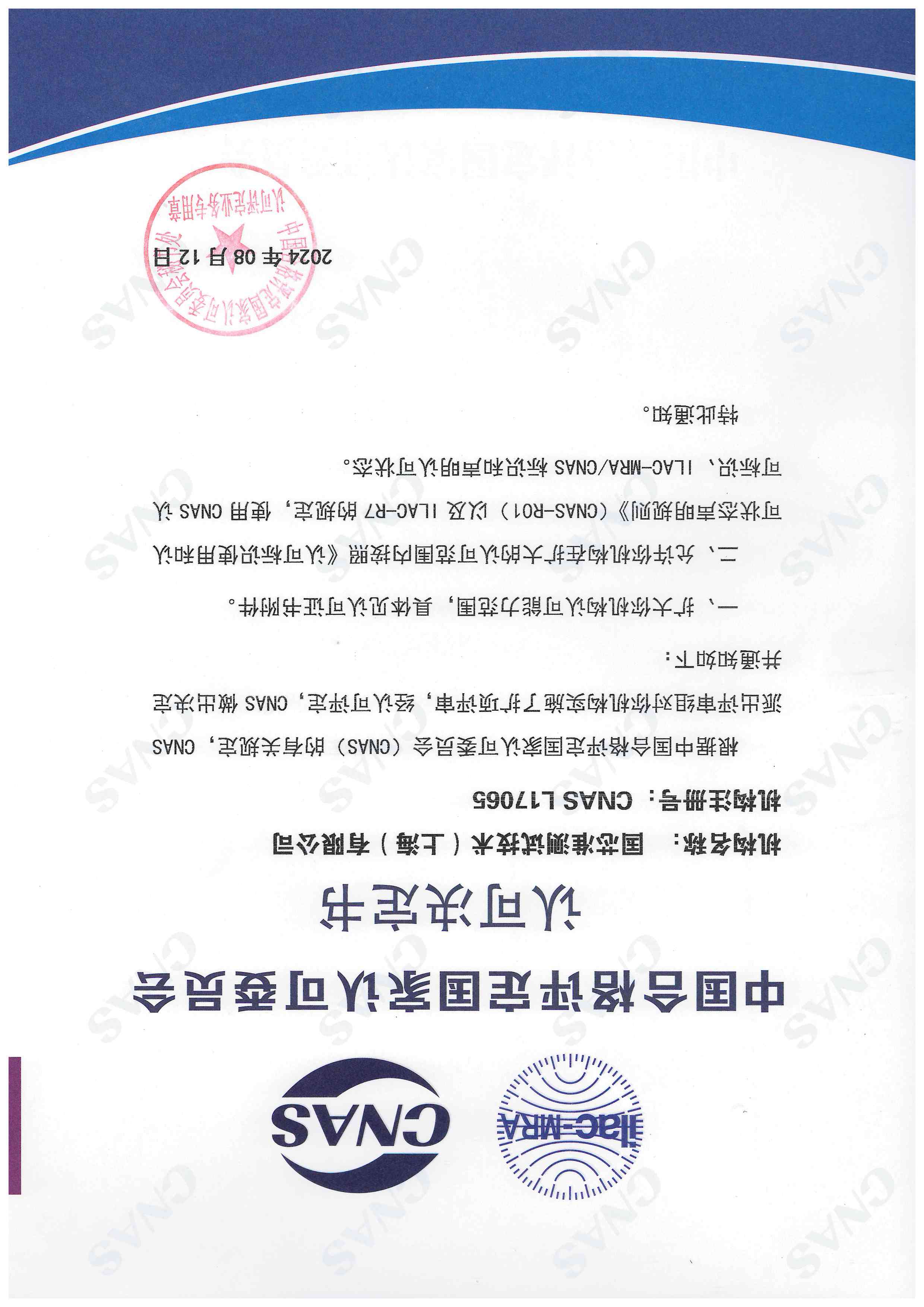 2024年8月,國芯準測試順利通過中國合格評定國家認可委員會組織的CNAS認可擴項變更,標志著芯準檢測上海外高橋實驗室正式取得CNAS實驗室認可證書。